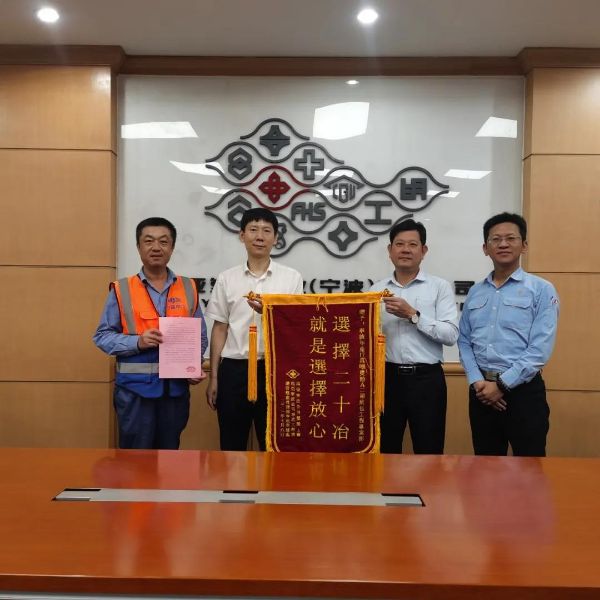 On the afternoon of July 6, the overseas company Ningbo Bisphenol A Phase II Turnkey Project won the silk banner and letter of praise from the Bisphenol A Plant of Nan Ya Plastics (Ningbo) Co., Ltd. The letter highly praised the contract spirit and hard work of the overseas company and personnel of the Project Department for their good faith, facing difficulties and daring to take responsibility. The banner specifically mentioned that "Choosing MCC20 is Choosing Assurance", which represents the acknowledgement and applause to the Project Department.