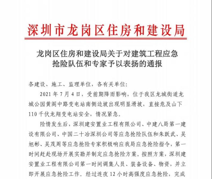 On July 26, Shenzhen MCC20 was praised by Longgang District Housing and Construction Bureau in a circulated notice.