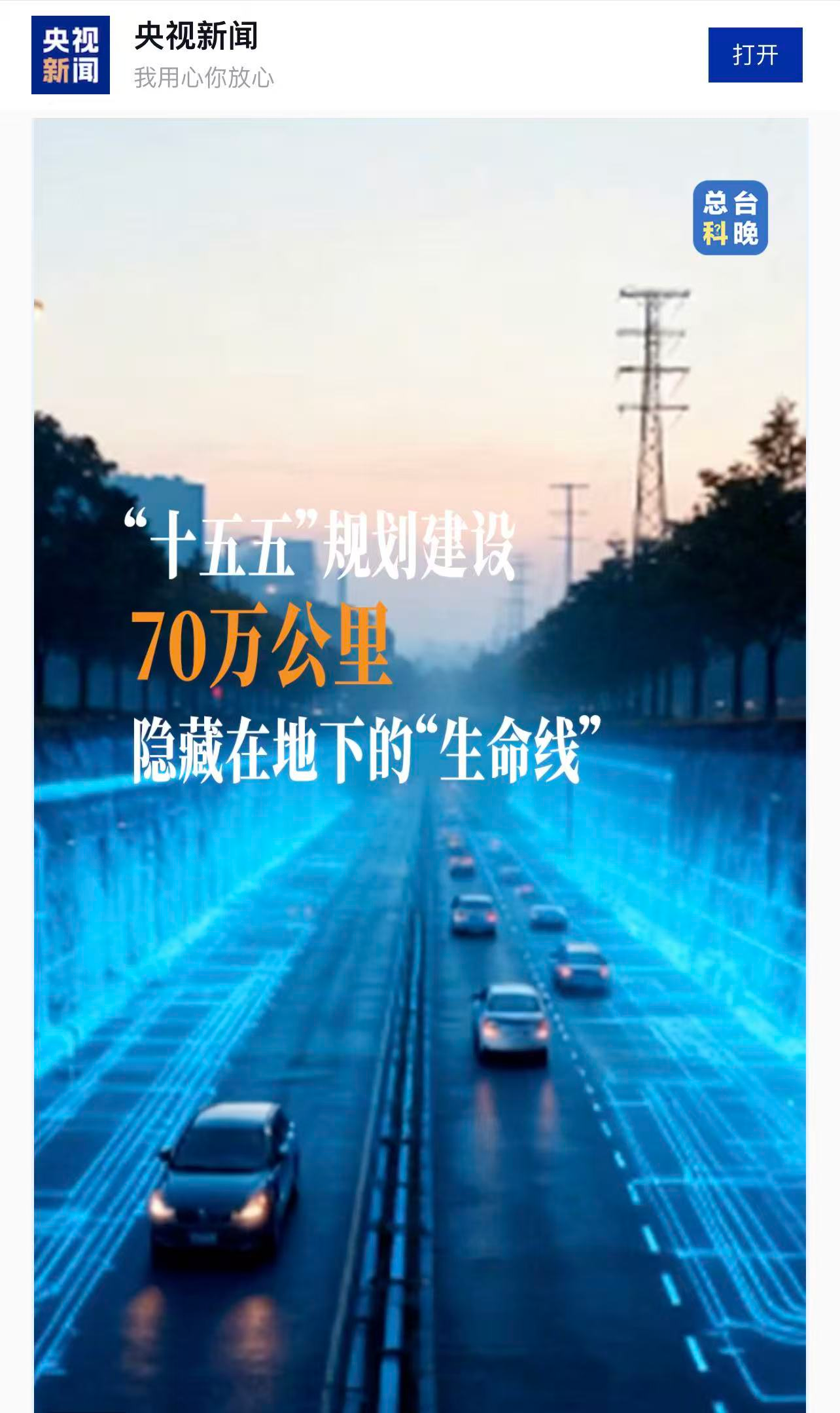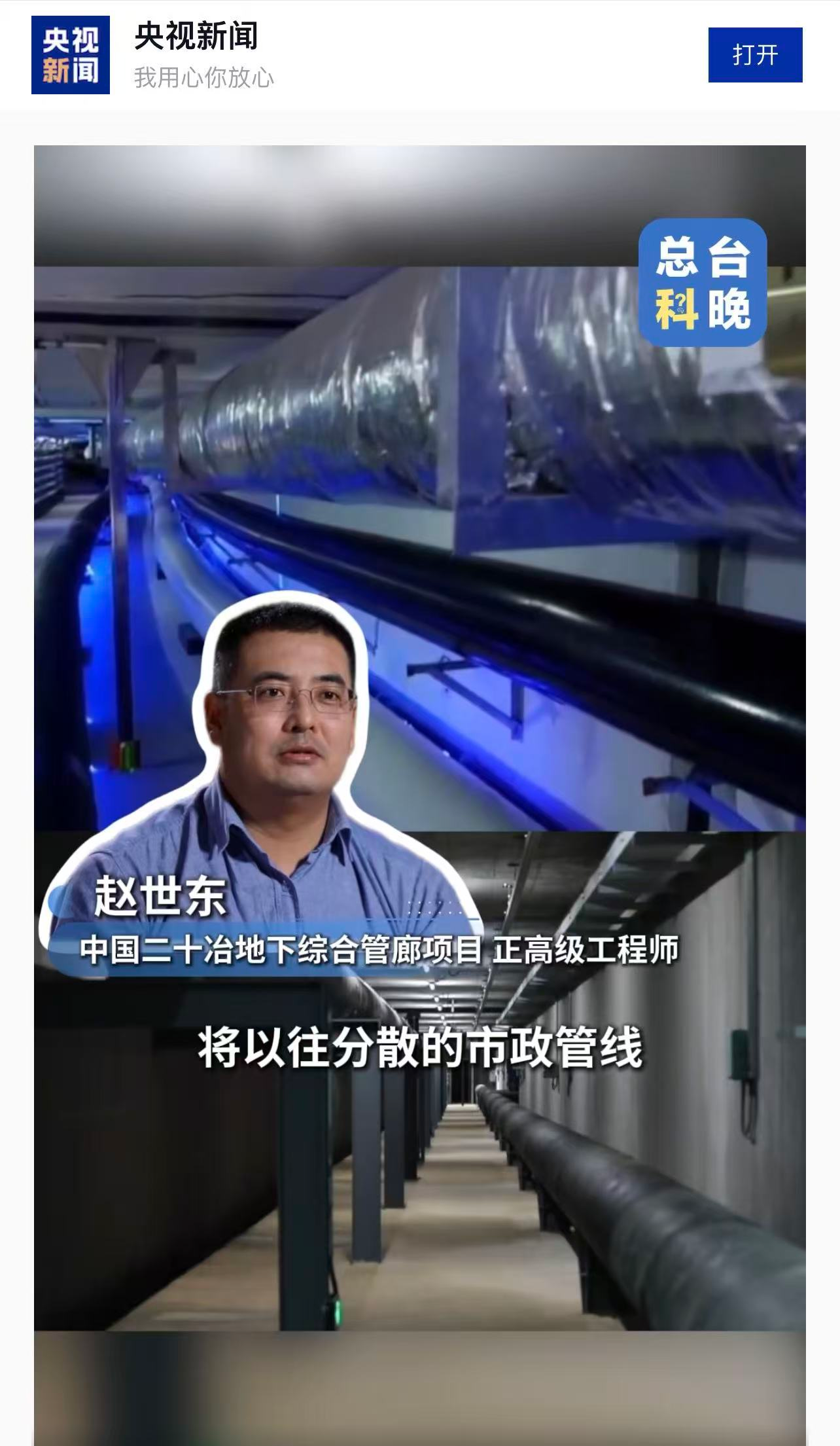 11月7日,央视新闻客户端以《告别“拉链路”!一起了解城市地下的“生命线”》为题发布专题报道,通过视频镜头深入探秘中国二十冶承建的深圳阿波罗未来产业城综合管廊项目,系统解读地下综合管廊如何破解城市“马路拉链”顽疾,并结合“十五五”规划中70万公里地下管网建设目标,展现中国城市基础设施升级的创新实践。