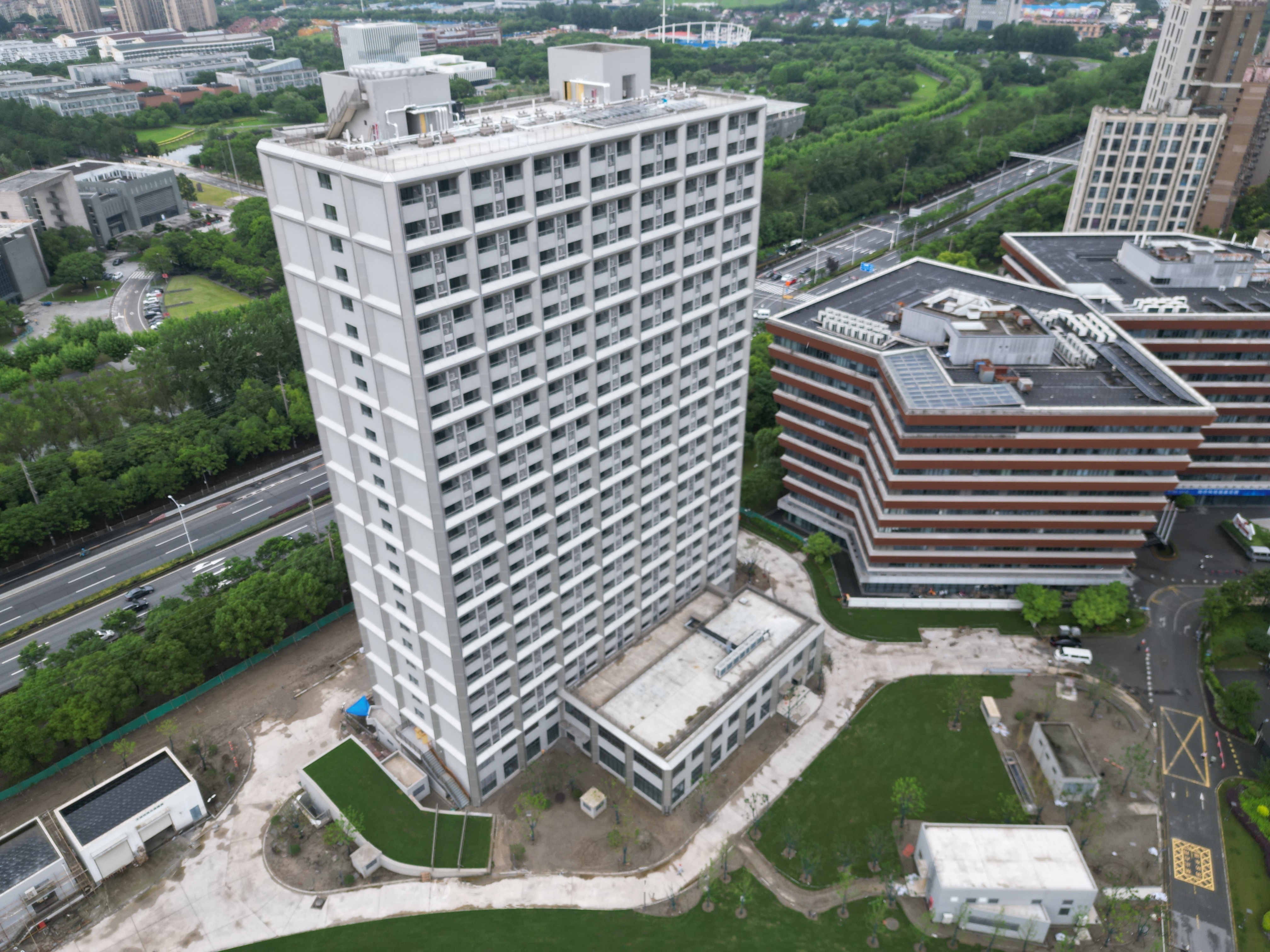 目前,项目建设进入最后冲刺阶段,预计8月底将全面完工交付。项目部将继续保持高度负责的态度,做好剩余收尾工作,全力实现品质交付目标,将天骄公寓打造成为同济科技园新地标、嘉定人才集聚新高地。