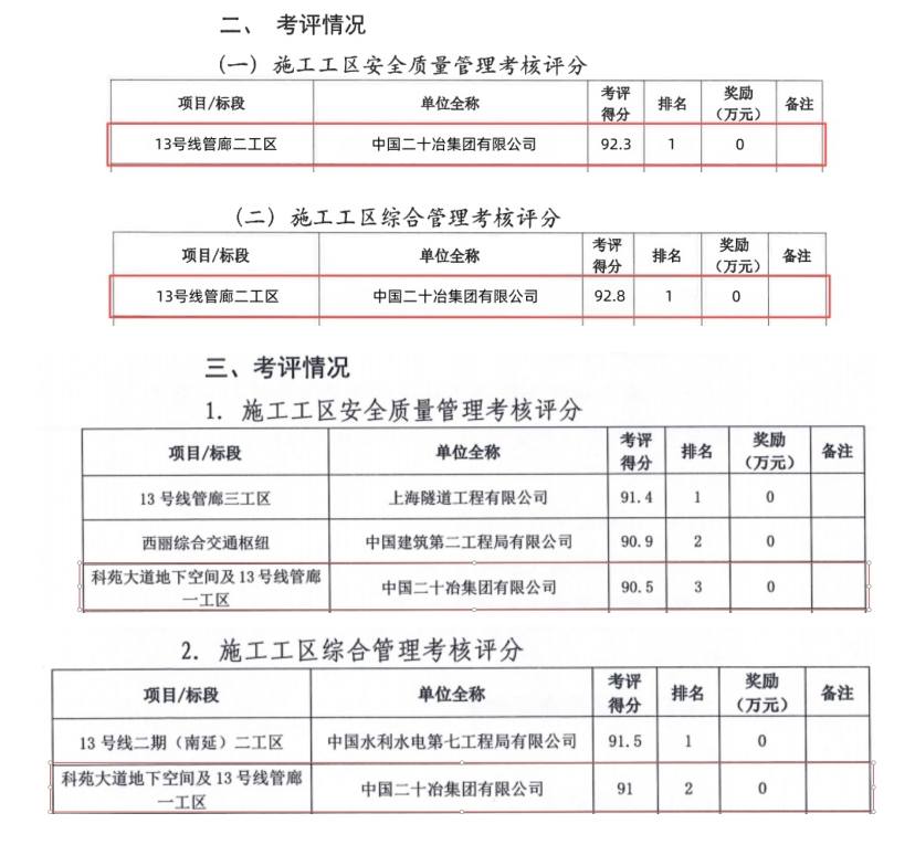 深圳地铁建设集团有限公司公布了《关于地铁13号线、13号线二期(南延)、科苑大道地下空间及13号线管廊、西丽综合交通枢纽工程2025年二季度、三季度考核结果的通报》,地铁二工区项目荣获2025年第二季度施工工区安全质量管理和综合管理考核评分“双第一”,地铁一工区项目荣获2025年第三季度施工工区安全质量管理考核评分第三名、综合管理考核评分第二名的好成绩。