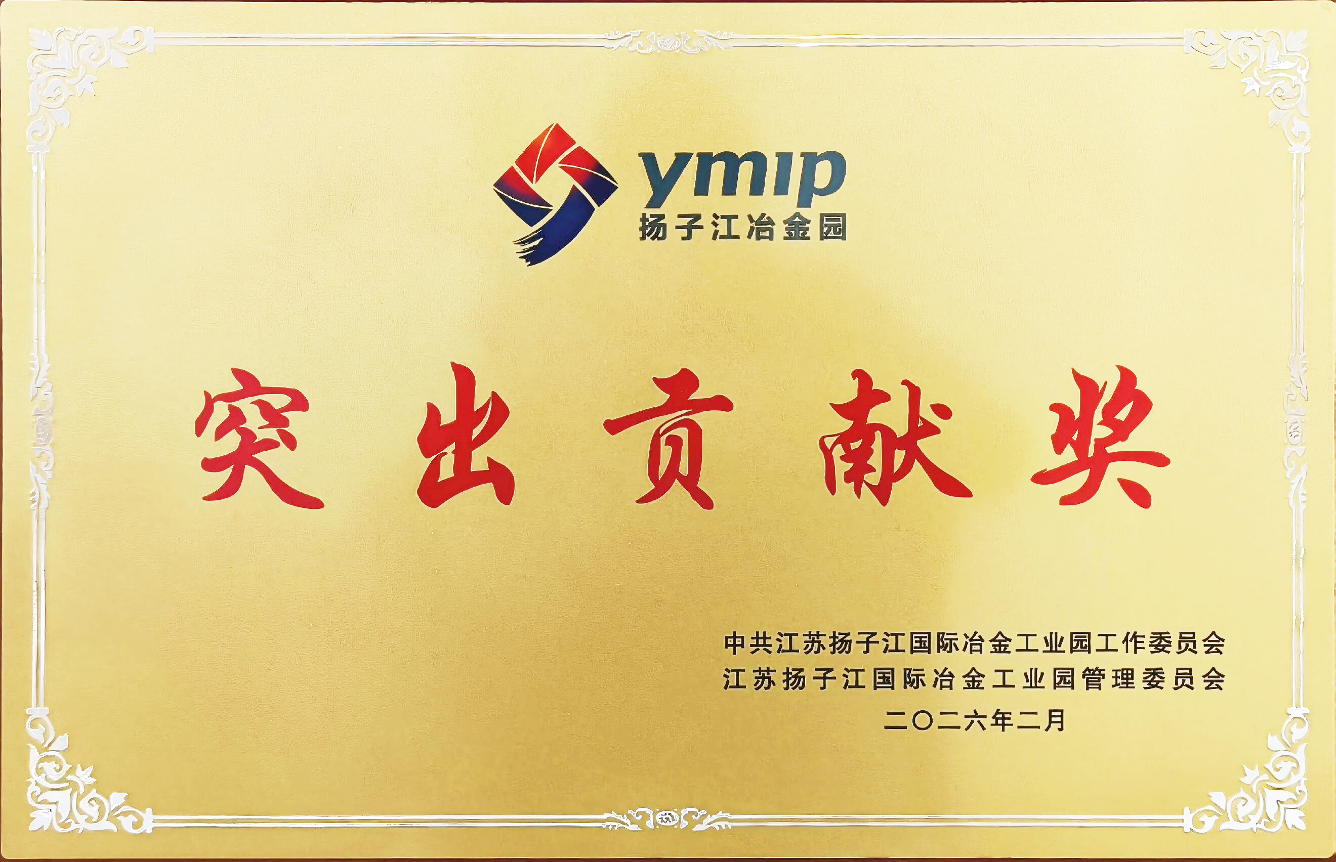 3月2日,上海二十冶荣获江苏省扬子江国际冶金工业园 2025 年度突出贡献奖,作为园镇重点骨干企业,以实干实绩彰显了在园镇高质量发展中的重要作用。