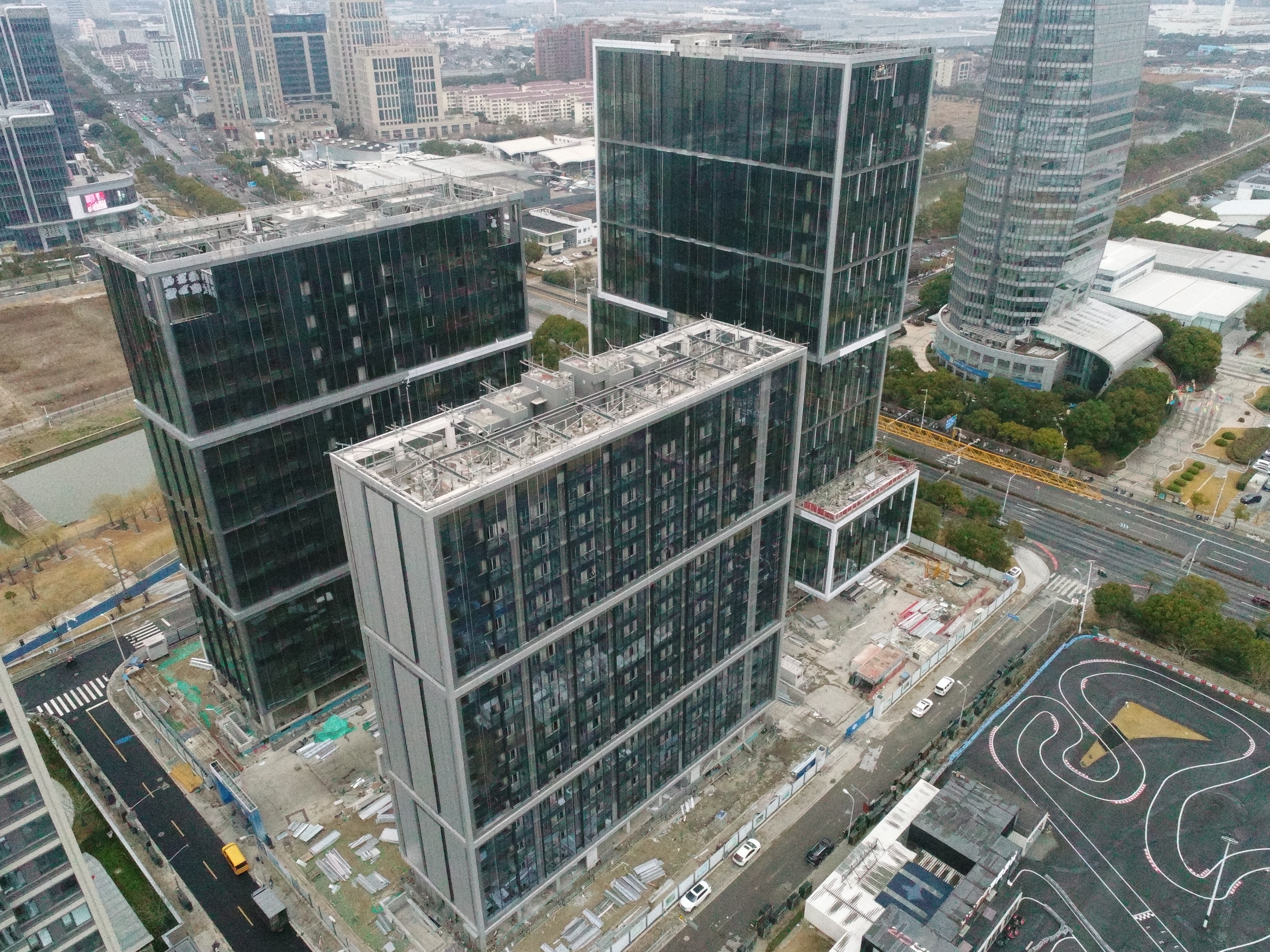 嘉定汽车城商办项目钢结构用量大、节点构造复杂。建设过程中,项目团队聚焦钢管柱垂直度控制、核心筒钢筋绑扎等难点,运用BIM技术开展施工模拟,提前识别并解决结构与机电、幕墙等专业间的冲突,优化钢筋排布方案,有效减少现场返工,显著提升施工精度。在安全标准化建设方面,项目团队持续加强隐患辨识与巡查排查,定期开展安全教育和应急演练,深度应用智慧工地工程管理平台,对重点部位实施实时监控,全力打造绿色、环保、和谐的施工现场环境。