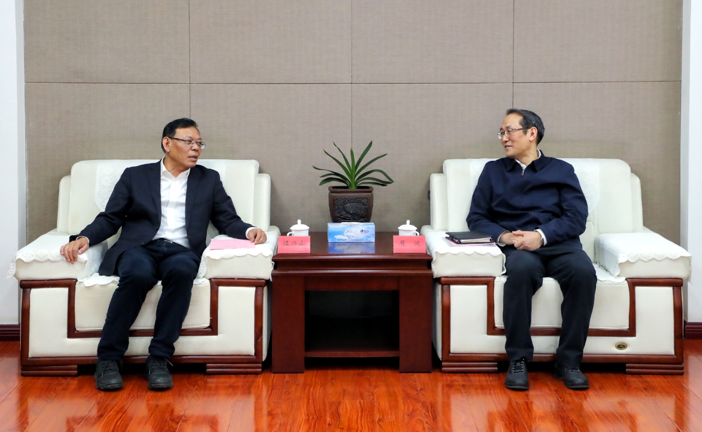 谭兴山一行拜访河东区委书记周波,区委副书记、区长张春等主要领导。回顾了政企合作取得的扎实成效,双方围绕天津市重点项目建设推进、城市更新、营商环境优化等事宜深入沟通。